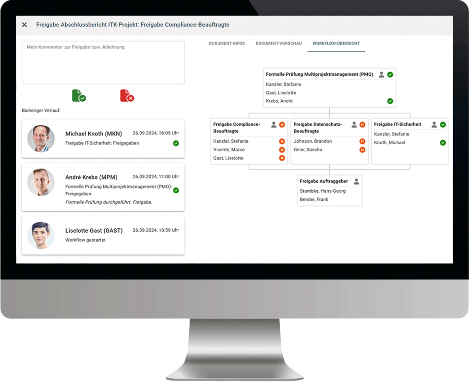 In diesem Video stellen wir Ihnen die frei definierbaren Freigabeworkflows in ibo netProject vor. Mit diesen Workflows können Sie dafür Sorge tragen, dass Dokumente von allen relevanten Instanzen freigegeben und kommentiert werden können.